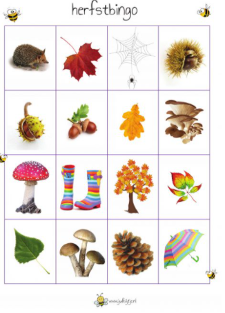 Voor wie in de herfst naar het bos gaat is er een herfstbingo. Je kan al zoekend het bos ontdekken.Er is geen regel voor kleur ,vorm ed.